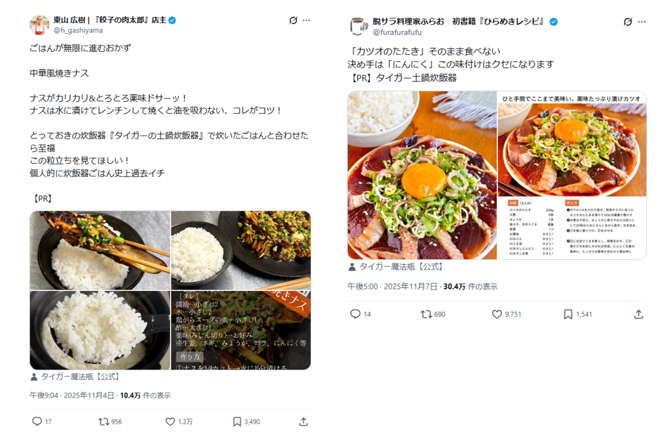 オーガニック投稿だけでは届ききらない潜在層へ広告でリーチを広げた結果、2025年における「炊飯器」のPR投稿ENGランキングで1位〜3位を独占する結果にも繋がりました。